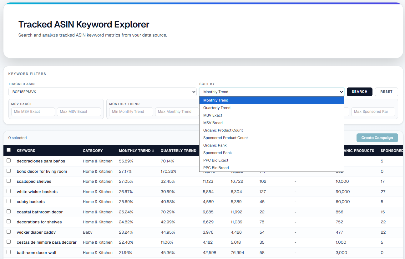 Se puede con la función que actualizamos, 'Tracked ASIN Keyword Explorer'.