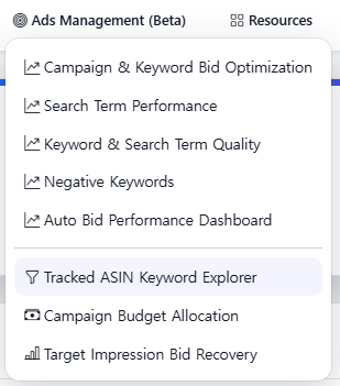 En el menú Ads Management(Beta), al seleccionar Tracked ASIN aparecerán los 2 ASIN que habías registrado anteriormente como Tracked ASIN y podrás seleccionarlos.