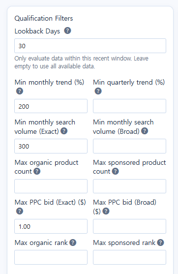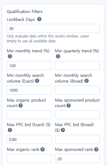 El escenario 2 es un método de "generar automáticamente solo palabras clave que estén en aumento reciente, tengan un volumen de búsqueda suficiente y cuyo CPC no sea demasiado caro". Para los vendedores principiantes, este enfoque es más práctico que el escenario 1.