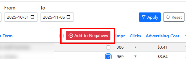 You can click once to immediately add inefficient keywords as negatives.