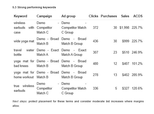 Now, instead of just simple insight summaries, you can receive automated analysis reports that include advertising data.