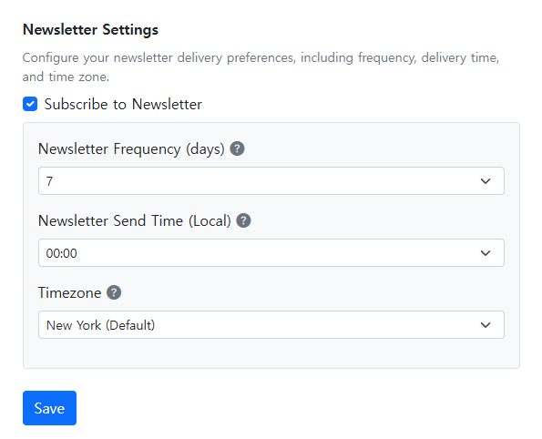 According to the newsletter setting cycle (after login > click the gear in the top right corner > set newsletter at the bottom),
