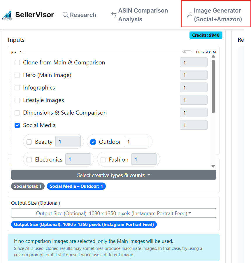To reflect these new capabilities, the page name has been updated from “Image Generator” to “Image Generator (Social + Amazon)”, highlighting that it now supports both social media content and Amazon listing images in one place.