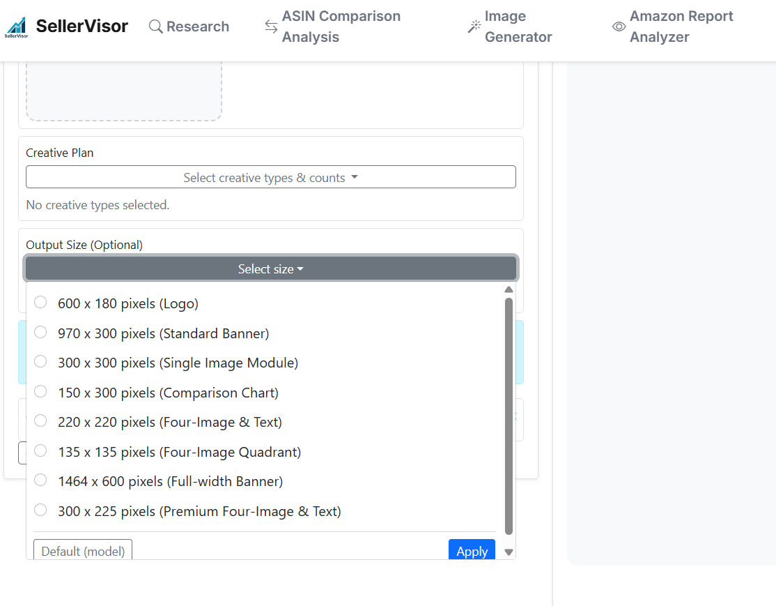 By specifying a ratio (for example, 16:9, 3:2, or 970×300), you can tailor the output for different use cases such as banners, product logos, lifestyle shots, or comparison graphics. This makes it easier to design a wide variety of A+ content layouts that better fit your creative and marketing needs.